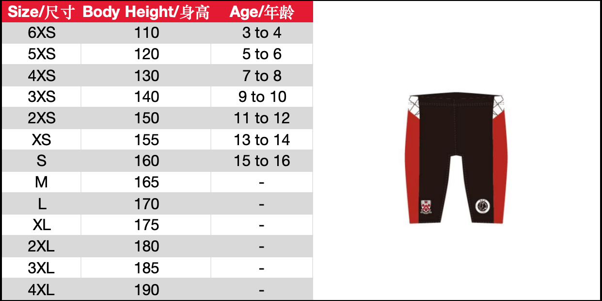 Size 6XS or 5XS or 4XS or 3XS or 2XS or XS or S or M or L or XL or 2XL or 3XL or 4XL