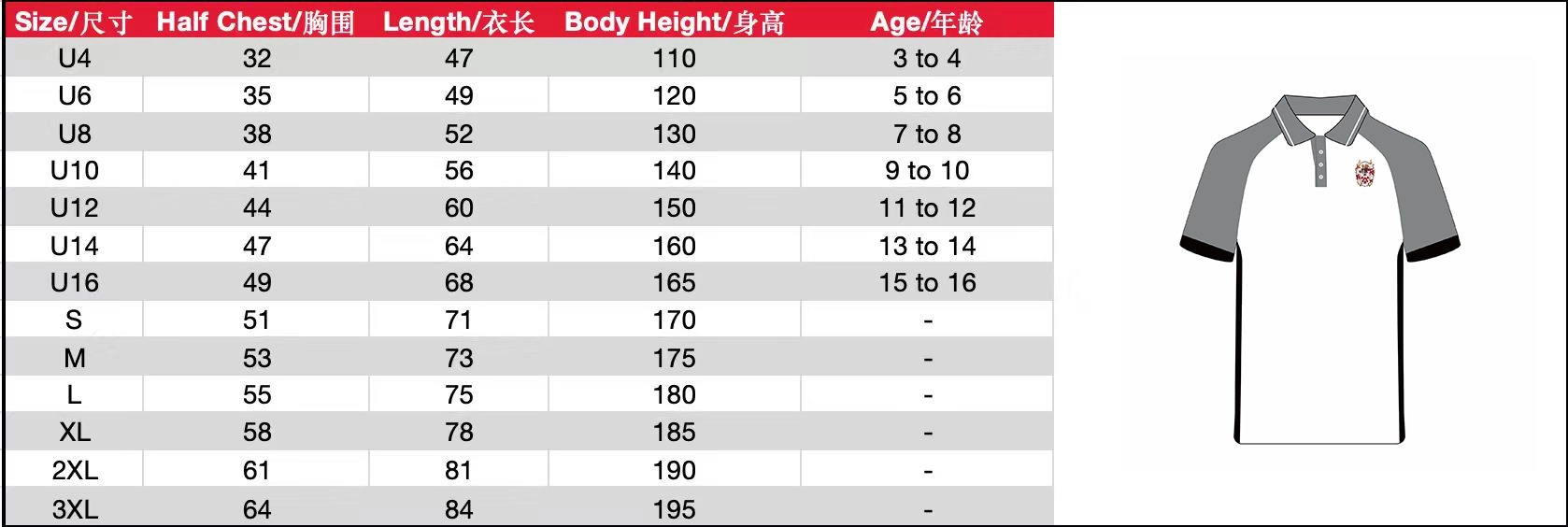 | Size | KS(U4) or KM(U6) or KL(U8) or JS(U10) or JM(U12) or JL(U14) or XS(U16) or S or M or L or XL or 2XL or 3XL |
